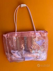 Borsa mare trasparente rosa con paillettes multicolore Misura circa 53x38