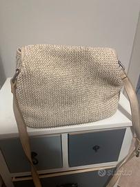 Borsa panna in simil vimini Mariamare con tasche interne e tracolla