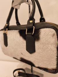 Borsa marrone a mano/tracolla, muccata in vera pelle. 27 cm×12 cm× 8 cm