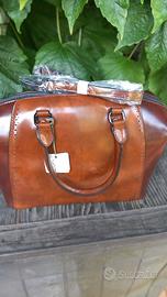 Borsa nuova, marrone con tasca interna e possibilità di tracolla.