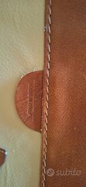 Borsa Cartella Vintage in Vera Pelle Cuoio Made in Italy - Con Chiave - Doppia Sezione Descrizione dell'oggetto Qualità Superiore e Design Artigianale Italiano In vendita una splendida cartella professionale vintage in stile ventiquattrore, realizzata in Italia invera pelle/cuoiodi alta qualità. Il colore è un classico marrone cognac che ha sviluppato una bellissima patina nel tempo, tipica dei materiali naturali di pregio. Interno Perfettamente Organizzato: La borsa è divisa in due sezioni ampie e funzionali: Primo Scomparto:Ampio spazio per documenti e cartelle. Secondo Scomparto Attrezzato:Include unalloggio per penne, unmoschettone portachiaviin metallo e unagrande tasca di sicurezza con cerniera lampo(perfettamente funzionante). Caratteristiche e Condizioni: Materiale:100% Vera Pelle (certificazione "Genuine Leather - Made in Italy" all'interno). Sicurezza:Chiusura frontale a scatto in metallo,completa della sua chiave originale(rarità per i modelli vintage). Stato:Oggetto vintage in ottime condizioni. La pelle è integra e robusta. Presenta lievi e naturali segni del tempo che conferiscono carattere e autenticità all'oggetto. Interno molto pulito. Misure: Larghezza: 40 cm Altezza: 28 cm senza manico Profondità: variabile, max 14 cm Le dimensioni sono ideali perché indicano che la borsa può ospitare comodamente un computer portatile.