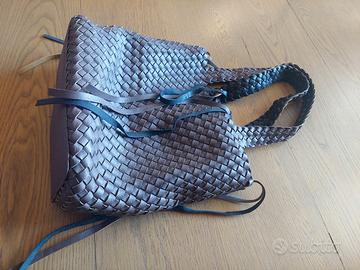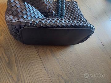 Borsa marrone intrecciata con manici