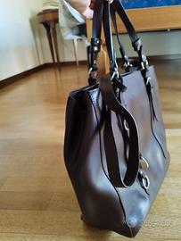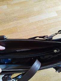 Borsa in pelle con due manici e tracolla. Misure: lunghezza cm30, profondità cm 12, larghezza cm 31. Due spazi interni con tasca centrale chiusa.