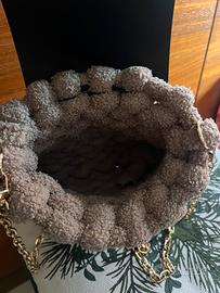 Borsa fatta a mano con filato gigante ( marshmellow) con pattina in ecopelle che garantisce una perfetta chiusura della borsa.