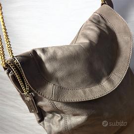 Borsa a tracolla Max&Co in pelle marrone con tracolla a catena dorata. Chiusura con patta, pelle morbidissima