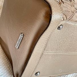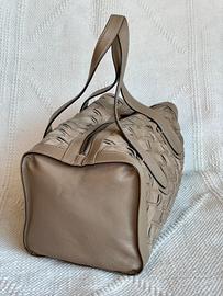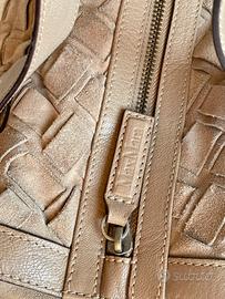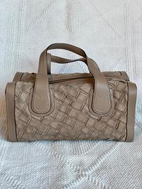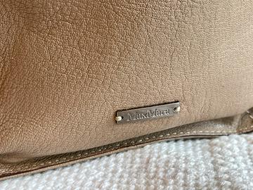 Borsa MAX MARA Made in Italy, modello bauletto, di colore beige in vera pelle martellata e scamosciata con fantasia ad intreccio.