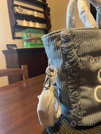 Borsa nuovissima mai usata , colore azzurro polvere in morbido tessuto a coste, modello invernale comodo e spazioso con tracolla