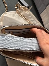 Borsa effetto rettangolare, da usare a tracolla o in saplla con le catene. Abbastanza capiente 2 cernirere.