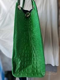 borsa,di colore verde,con doppia tracollo ,con seconda borsetta riattaccabile, comodissima per ogni esigenza, ottima qualità.
