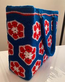 medium bag " Fiore africano". eseguita in microfibra, con rete Canvas per irrigidire e scocca interna in feltro correlata da tasche. Manici in tinta seguiti a mano con punto basso.