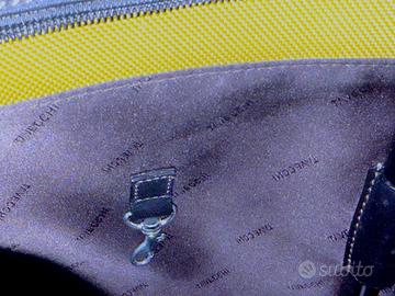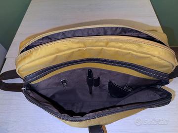 Vendo per inutilizzo ottima borsa originale Tavecchi colore senape e Pelle made in Italy, può contenere comodamente un computer portatile da 15/16 pollici, documenti, ha 2 portapenne, un portachiavi, non ha cedimenti di sorta, le zip sono originali e funzionano perfettamente, il colore è sempre vivo e le parti in pelle sono ancora lucide e morbidissime, ha 3 scompartimenti, ha la tasca doppia zip per poter essere infilata sulla maniglia estensibile di un trolley.