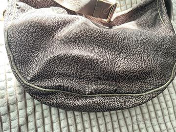 Borsa mezzaluna Borbonese color tortora. Ottime condizioni, appena un po graffiata nel bordo come visibile in foto