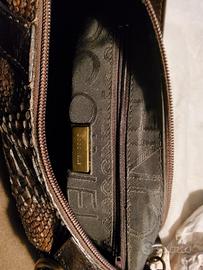 Borsa in vera pelle pitonata color moka, modello mezzaluna marchio Coccinelle come nuova