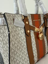 Borsa a mano Nouveau Hamilton grande in tela con stampa logo e presenta righe centrali e un ciondolo/lucchetto. Borsa nuova mai usata, come potete vedere è ancora con le protezioni. Prezzo trattabile.