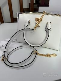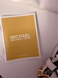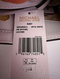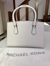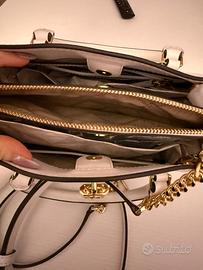 Vendo borsa originale Michael Kors, nuova, mai utilizzata, ancora con cartellini.Colore bianco con dettagli dorati, elegante e perfetta per ogni occasione. Modello strutturato con chiusura zip e iconico logo con lucchetto frontale.Dotata di manici rigidi e tracolla removibile (se presente). Interno capiente e ben organizzato, ideale per uso quotidiano o occasioni più eleganti. Inclusa anche la sua busta originale (dust bag). 📌 Condizioni: nuova📌 Colore: bianco📌 Ideale per: lavoro, eventi, uso quotidiano