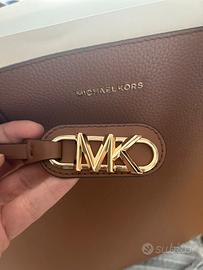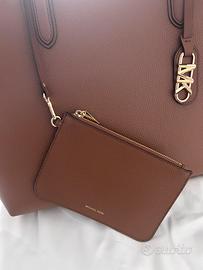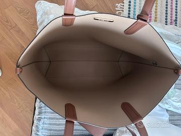 Molto capiente, dotata di borsello interno. Dettagli in tonalità oro.