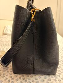 DESCRIZIONE Borsa a mano MICHAEL CORS COLLECTION IN PELLE MARTELLATA NERO MANICI A MANO rotondi IN PELLE INTRECCIATA TRASFORMABILE IN SHOPPING TRACOLLA RIMOVIBILE DUST BAG NON ORIGINALE USATA DUE VOLTE foderata con doppia tasca interna con una cerniera