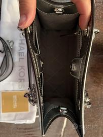 Borsa Michael Kors Cynthia piccola in pelle metallizzata, dotata di tracolla e fodera per riporla. Pulita mai utilizzata. #michaelkors #borsadonna #borsaatracolla #borsaamano #borsaergento