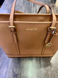 Borsa Michael Kors Jet Set Travel originale, modello Big in elegante pelle Saffiano marrone.