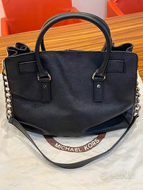 Borsa Michael Kors Hamilton originale nera con tracolla, finiture in metallo dorato, leggere abrasioni nelle cuciture, completa di dust bag, dimensioni cm. 36x11x32 H