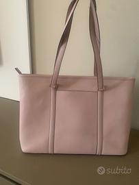 Borsa rosa cipria, elegante e capiente, anche porta pc. Questa borsa unisce stile e funzionalità , ideale per ufficio, università, lavoro, viaggi. Interno foderato con tasche multifunzione. Design fatto di linee pulite, colore neutro e raffinato che si abbina con tutto. Materiale resistente e facile da pulire. Ottime condizioni