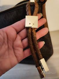 manici e chiusura in cuoio intrecciato e stampa classica MK.