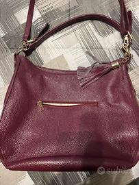 Borsa in vera pelle con cerniere laterali una sul retro e centrale con tracolla tasche interne e divisorio interno
