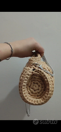 Fatta a mano, dotata di catena removibile per utilizzarla a tracolla. Utilizzabile anche a mano. Fatta in fettuccia di lycra