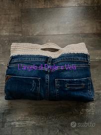 Borsa fatta a mano con jeans e cotone lavorata con uncinetto