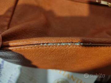 La borsa presenta segni di usura alla base dovuta all'uso. Questo è stato già considerato nel prezzo. La pelle è ancora robusta e la borsa è perfettamente funzionale.