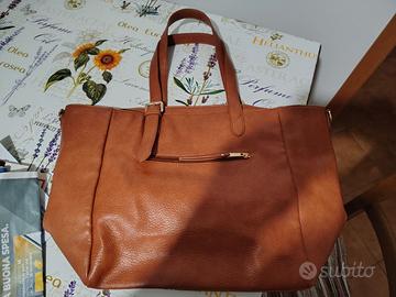 Borsa MIMI MUA in vera pelle di qualità, colore marrone cognac. Elegante tote bag con manici, perfetta per uso quotidiano e lavoro.