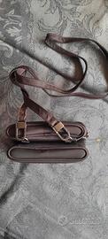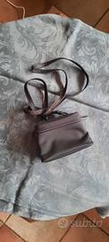 Mini borsetta a tracolla, DKNY originale, con doppia zip in entrambe i lati, cioccolato.