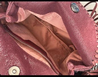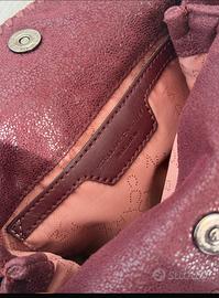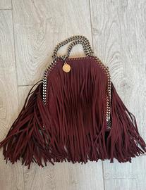 Particolare borsa falabella originale n pelle vegana con frange e catena argento , logo in metallo StellaMccartney, colore bordeaux ,indossata pochissimo in perfette condizioni, misure 26.5X23,5X10cm, prezzo di vendita 1290€