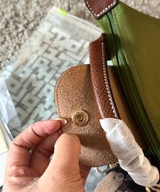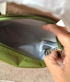 Borsa mini con tracolla regolabile. Misura 17×11×6. Nuova con confezione e cartellino (come in foto, completa con tag, busta e tracolla set) Il colore è un Lichen Green. La tracolla, bottone davanti e dietro e zip hanno il logo. Sono borse Factory Pull Out direttamente dal magazzino. Spedizione Veloce, In giornata! Poste&Inpost (dal lun-dom qualsiasi ora) Brt (dal lun-ven qualsiasi ora)