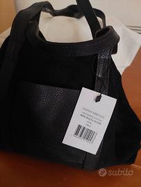 Bellissima borsa in pelle scamosciata nuova con cartellino ha doppi manici che permettono di portarla a mano oppure in spalla
