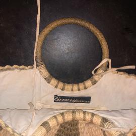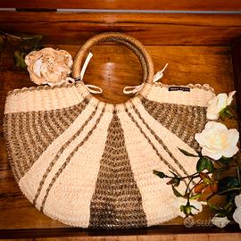Vendo borsa in paglia Miss Sixty della linea Luxury nuova ,panna con strisce marroni interno in cotone con tasche e scomparti e manico ad anello intrecciato ideale per l'estate colori neutri da abbinare a qualsiasi colore di costume e abbigliamento casual dì jeans comoda e capiente.nuova e senza segni di usura materiale molto resistente difficile ad deteriorarsi nel tempo !chiusura con laccetti
