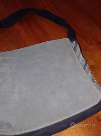 Borsa tracolla postino blu/azzurra in pelle scamosciata e stoffa originale Missoni Sport misure largh. 36 cm circa h. 30 cm prof. 13 cm