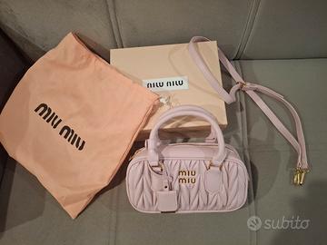 Vendo la mia borsa Miu Miu Arcadie Matelassé colore rosa, con finiture dorate. La borsa è nuova e non presenta segni di usura o macchie. Ho ancora il sacchetto originale e la scatola originale. Insieme alla borsa è compreso: -Dust bag -Tracolla regolabile -Sacchetto e scatola Per qualsiasi informazione non esitare a scrivermi Prezzo trattabile