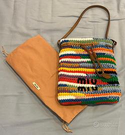 Borsa Miu Miu originale in cotone multicolore con certificato di garanzia nuova mai usata