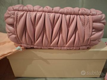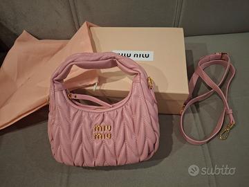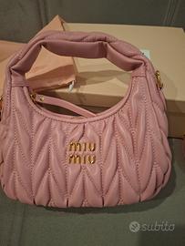 Vendo la mia borsa hodo Miu Miu Matelassé colore rosa, con finiture dorate. La borsa è nuova e non presenta segni di usura o macchie. Ho ancora il sacchetto originale e la scatola originale. Insieme alla borsa è compreso: -Dust bag -Tracolla regolabile -Sacchetto e scatola Per qualsiasi informazione non esitare a scrivermi Prezzo trattabile