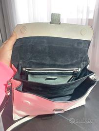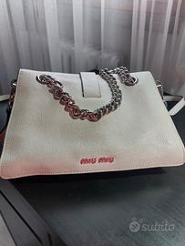 Vendo bellissima borsa originale Miu Miu in pelle bianca con catena in metallo color argento. La borsa è stata acquistata nuova in boutique e pagata 900€. È stata usata pochissimo ed è in ottime condizioni. Interno pulito con tasca con zip e tracolla regolabile. Elegante e capiente, perfetta sia per uso quotidiano che per occasioni speciali. Non ho più il certificato ma il logo Miu Miu è presente sia all’esterno che all’interno della borsa. Prezzo: 290€ leggermente trattabili. Possibilità di spedizione oppure consegna a mano. Per altre informazioni o ulteriori foto scrivetemi pure.