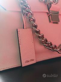 Vendo bellissima borsa originale Miu Miu in pelle bianca con catena in metallo color argento. La borsa è stata acquistata nuova in boutique e pagata 900€. È stata usata pochissimo ed è in ottime condizioni. Interno pulito con tasca con zip e tracolla regolabile. Elegante e capiente, perfetta sia per uso quotidiano che per occasioni speciali. Non ho più il certificato ma il logo Miu Miu è presente sia all’esterno che all’interno della borsa. Prezzo: 200€ leggermente trattabili. Possibilità di spedizione oppure consegna a mano. Per altre informazioni o ulteriori foto scrivetemi pure.
