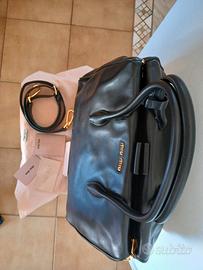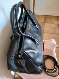 Borsa miu miu Prada grande, doppia pelle, interno rosso, esterno nero.