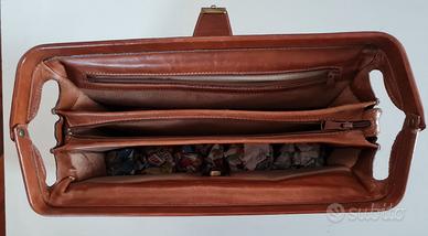 Propongo una borsa-valigetta originale della The Bridge, molto ampia e capiente con la tipica apertura "a fisarmonica" delle borse dei medici. Chiusura a combinazione e cerniere perfettamente funzionanti. Condizioni come in foto, da segnalare qualche segno di usura ed alcune piccole zone scurite che sono tipiche del cuoio, nessuno strappo, giusto qualche graffiatura superficiale. Un accessorio di qualità per professionisti che amano le cose belle e durature.