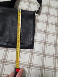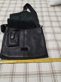 borsa a tracolla, modello 'postino' in vera pelle ,colore nero.