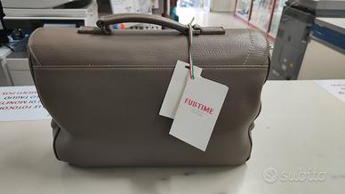 vendo borsa modello postino colore fango vera pelle marchio full time nuova dimensione 42cm x 30cm profondità base 18 cm