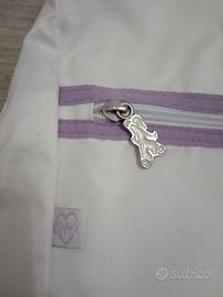 Stupenda borsa-zainetto monospalla con tasca portacellulare marca Onyx. Bianco con bordi e decorazioni con farfalle lilla.