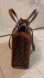 Borsa con un design geometrico a righe diagonali.