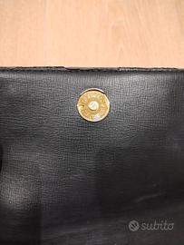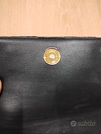 Pochette di Moschino nera con interno rosso e dettagli in oro. Presenta qualche difetto di usura (trascurabile) come da foto.