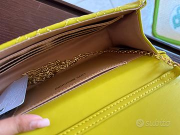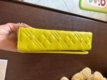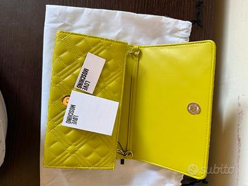 Borsa love moschino nuova in ecopelle trapuntata chiusa con pattina. Interno foderato e organizzato. Tracolla a catena. 22 x 13,5 x 6 cm.